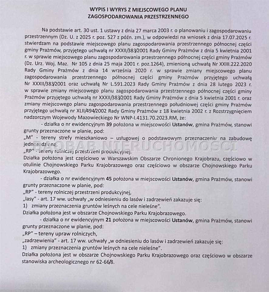 Do sprzedaży trzy działki w Ustanowie (nr 39, 45, 21) o łącznej powierzchni 3,8 ha. Działki są objęte MPZP z różnym przeznaczeniem: