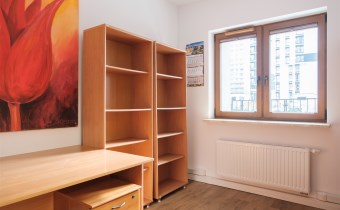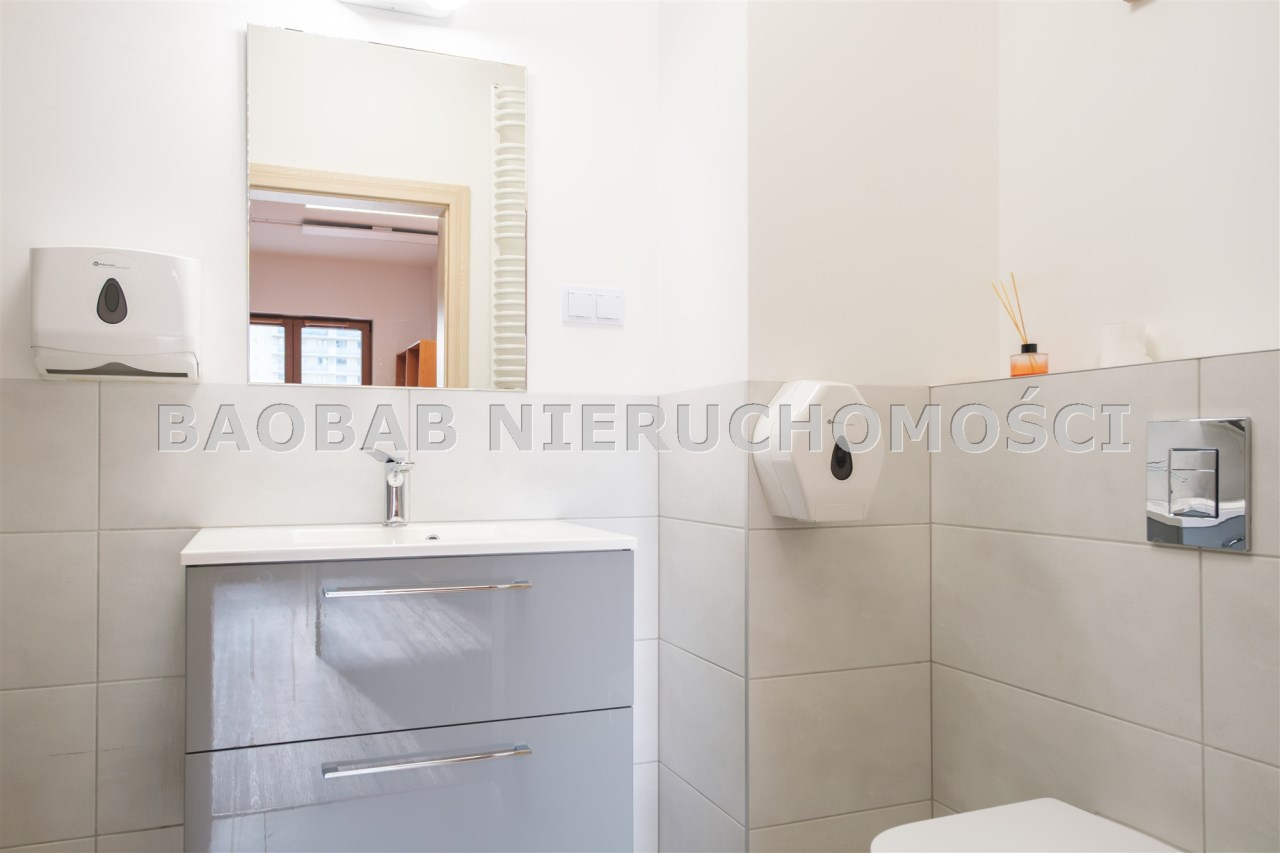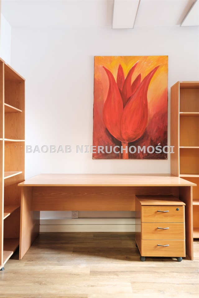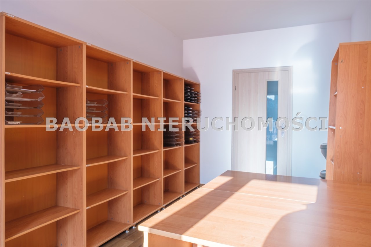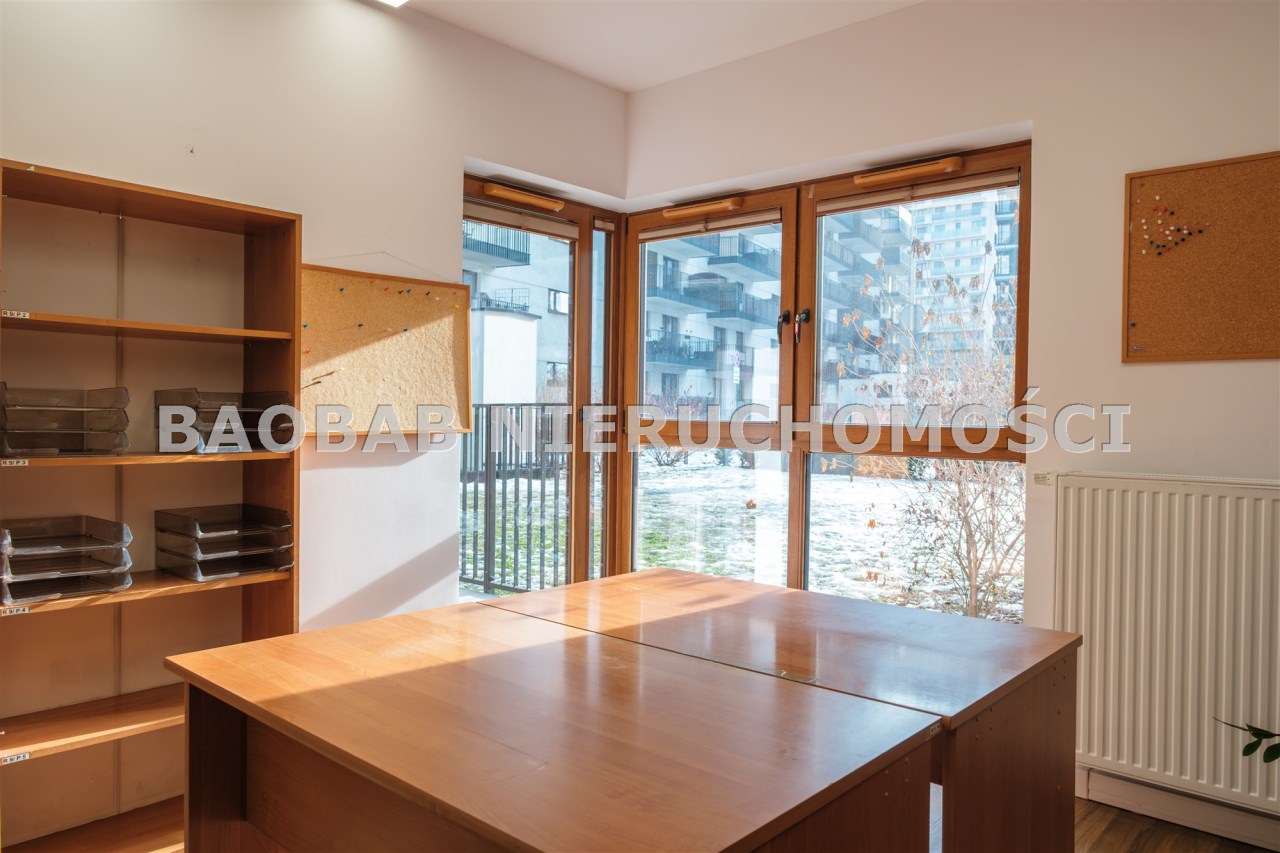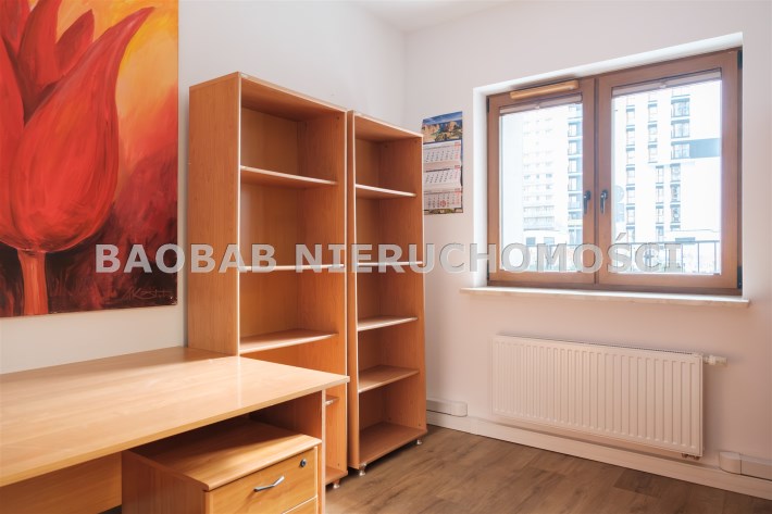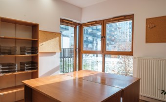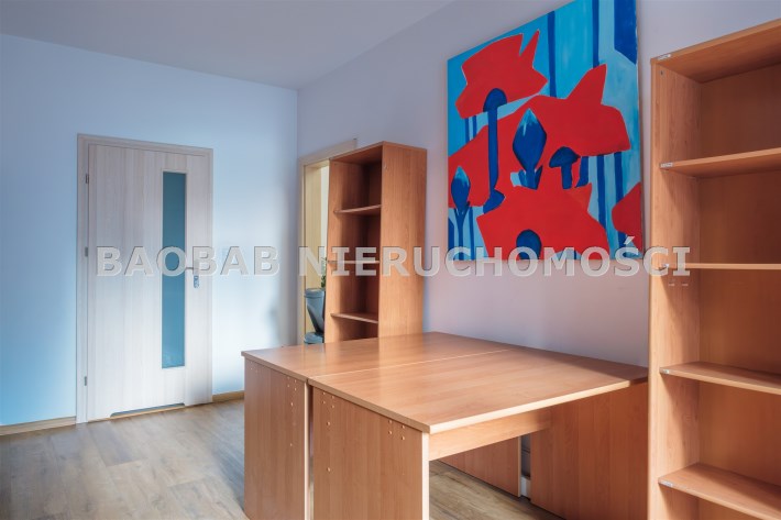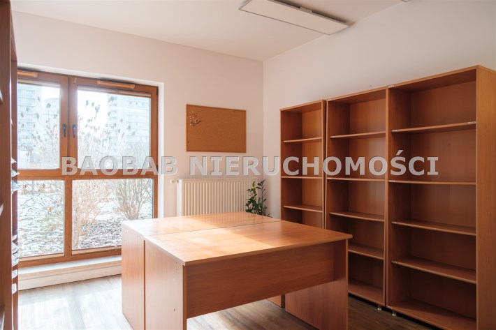 Lokal jest w pełni dostosowany do działalności biurowej: nowoczesne okablowanie sieciowe, regały i półki na dokumenty, gotowe stanowiska z biurkami (wyposażenie biura może zostać usunięte), aneks kuchenny, magazynek i serwerownia (z dodatkową klimatyzacją).