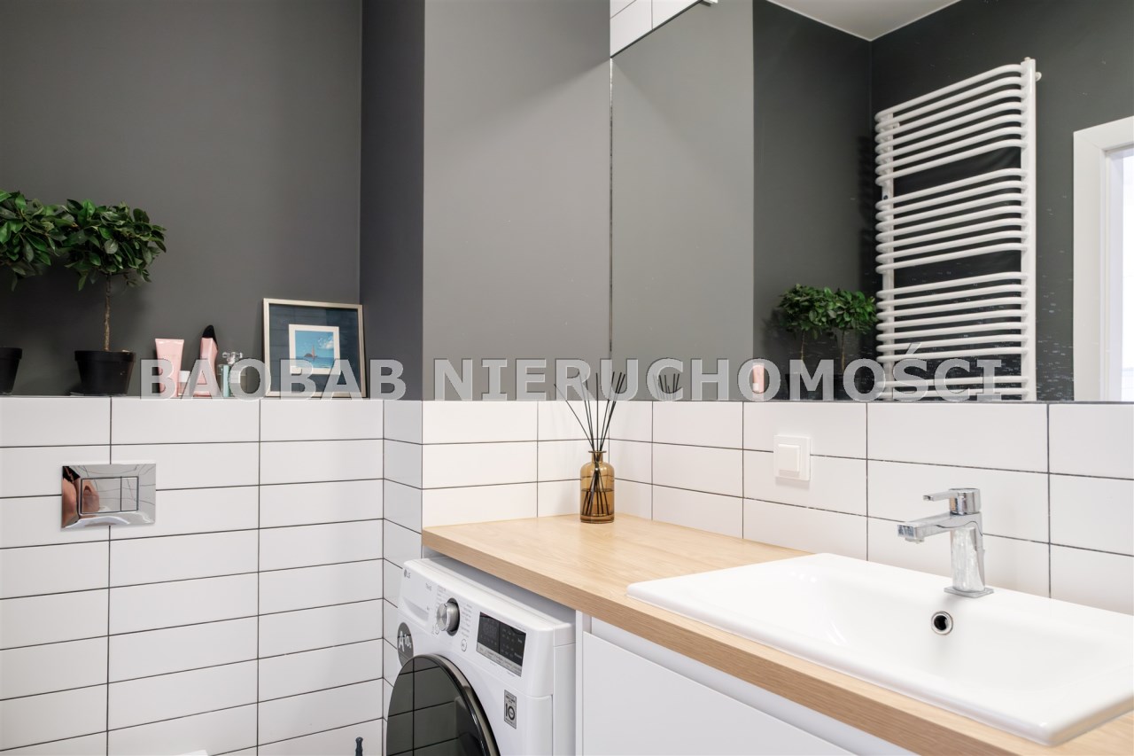 Lokal znajduje się na trzecim piętrze nowoczesnego budynku z 2022 roku, zrealizowanego przez Dom Development, znanego z wysokiego standardu wykonania i dopracowanych inwestycji mieszkaniowych. Mieszkanie jest w pełni wyposażone, urządzone z dużą dbałością o wygodę codziennego życia i gotowe do zamieszkania bez dodatkowych nakładów finansowych. Jasne wnętrze, funkcjonalny układ oraz nowoczesne wykończenie sprawiają, że jest to idealna propozycja zarówno dla singla, pary, jak i inwestora poszukującego nieruchomości w atrakcyjnej lokalizacji.
