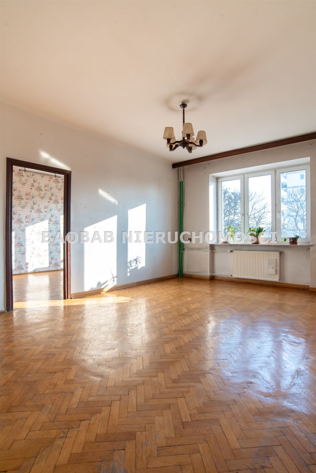 Mieszkanie jest dwustronne i ma funkcjonalny, klasyczny układ. Składa się z czterech niezależnych pokoi, oddzielnej kuchni oraz dodatkowego pomieszczenia gospodarczego (dawnej służbówki), które może pełnić funkcję gabinetu, garderoby lub schowka. Taki rozkład daje wiele możliwości aranżacyjnych – zarówno dla rodziny, jak i pod wynajem.
