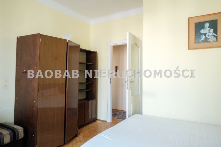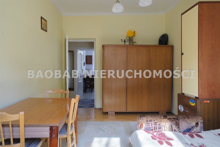 Lokal obecnie składa się z dwóch pokoi oraz oddzielnej, widnej kuchni, z możliwością łatwej aranżacji trzech pokoi z aneksem kuchennym, co daje duży potencjał inwestycyjny lub funkcjonalny dla rodziny. Do mieszkania przynależy piwnica.