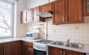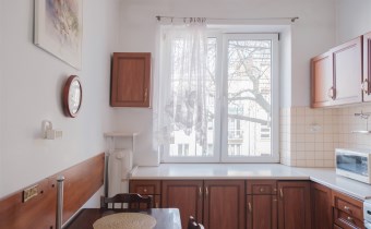 Mieszkanie jest ciche i dobrze doświetlone. Okna wychodzą na podwórko oraz spokojną uliczkę, a ekspozycja północ–południe zapewnia naturalne światło przez cały dzień. Budynek jest monitorowany (kamery).