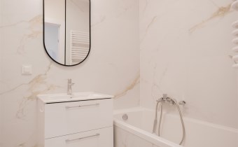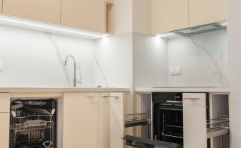 Mieszkanie zostało wykończone przez firmę Dom Development w standardzie „Profil z kuchnią”.