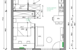 Salon z aneksem kuchennym – 19,17 m²