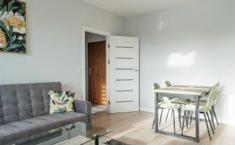 Do wynajęcia nowoczesne i komfortowe mieszkanie o powierzchni 46 m², położone na czwartym piętrze nowego budynku z windą przy ulicy Umińskiego 2 na warszawskim Gocławiu. Lokal składa się z dwóch oddzielnych, przestronnych pokoi, osobnej i w pełni wyposażonej kuchni, łazienki z prysznicem oraz przedpokoju z pojemną szafą w zabudowie. Z salonu prowadzi wyjście na balkon z ekspozycją zachodnią, dzięki czemu mieszkanie jest jasne i słoneczne w godzinach popołudniowych.