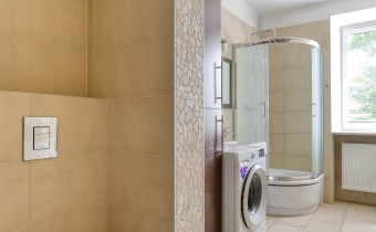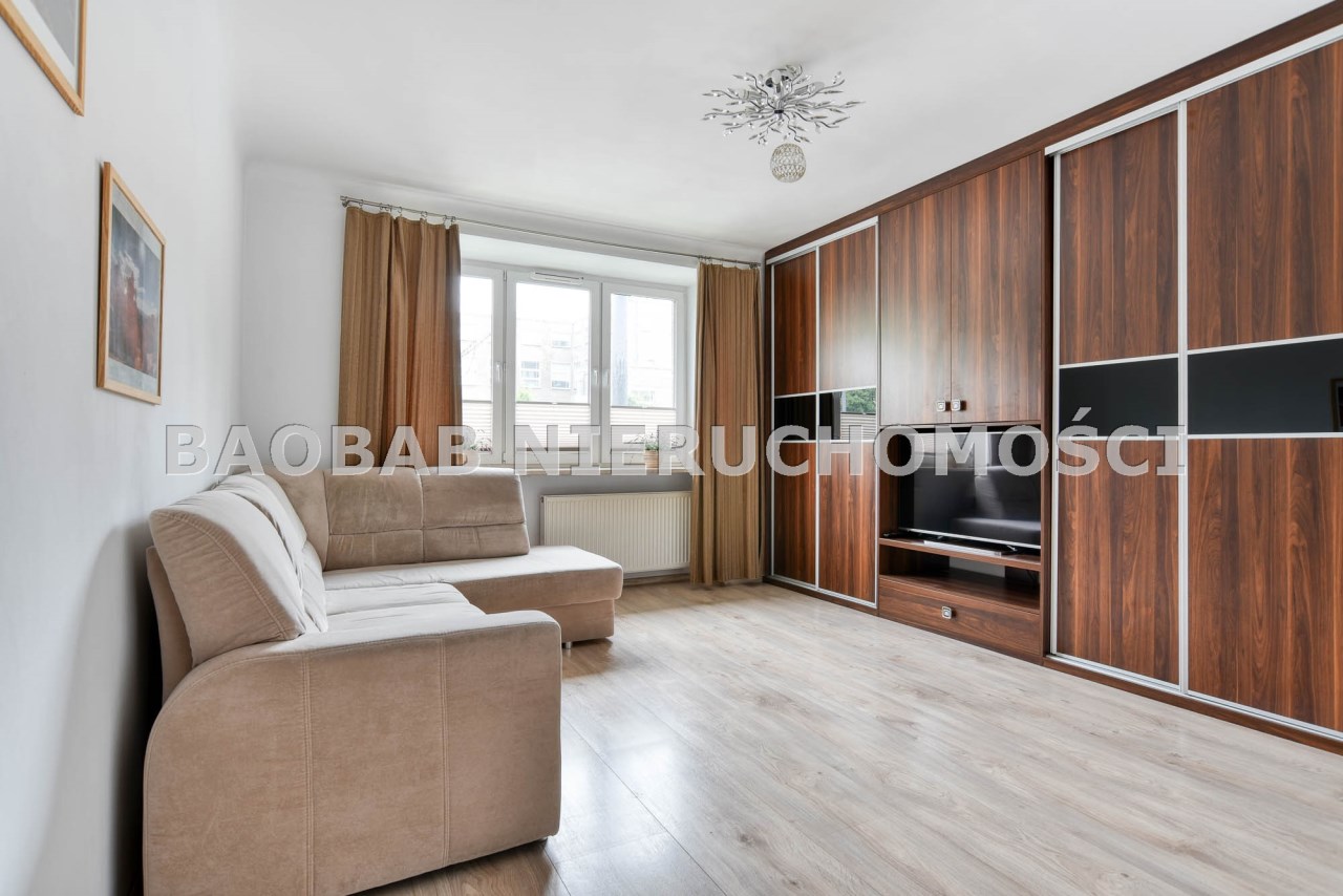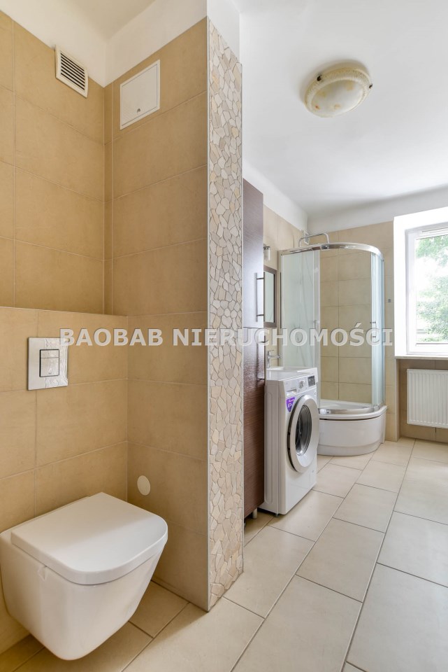 Trzy niezależne, zamykane pokoje, oddzielna, jasna kuchnia, duża łazienka z oknem, to wygodne mieszkanie dla rodziny lub trzech niezależnych osób. Jeden z pokoi bardzo mały, ale ma do dyspozycji bardzo dużą szafę (właściwie garderobę) w przedpokoju. Kuchnia, łazienka i mały pokój wychodzą na ciche podwórko, a dwa pozostałe pokoje są od strony Alei Niepodległości.