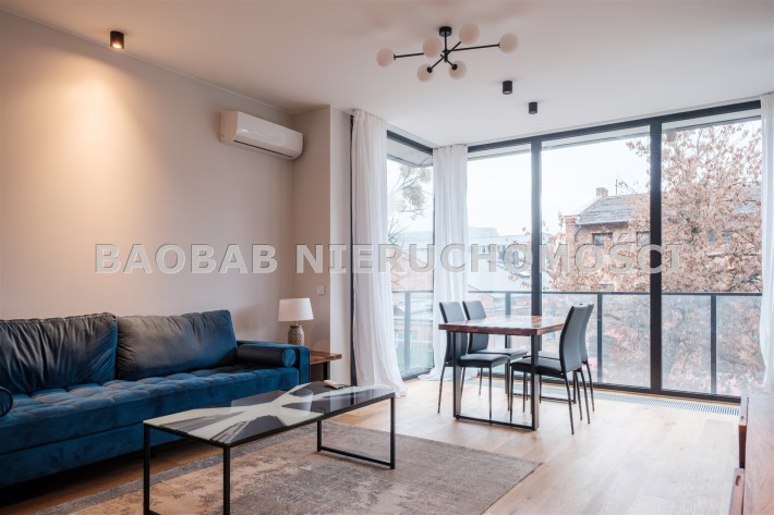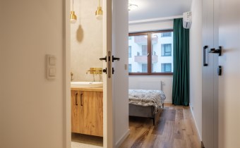 The apartment has been finished with great attention to detail, using high-quality materials. The interior is modern yet cozy – fully furnished and equipped with all essential household appliances (including a dishwasher, oven, induction hob, washing machine, and TV).