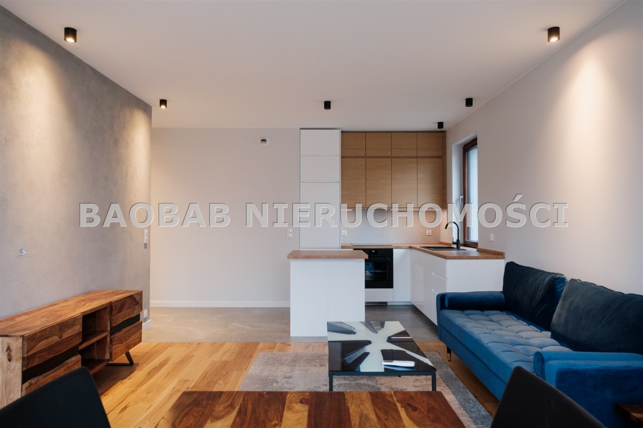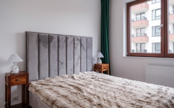 Apartament został urządzony z dbałością o detale, przy użyciu wysokiej jakości materiałów. Wnętrze jest nowoczesne, ale przytulne – w pełni umeblowane i wyposażone we wszystkie niezbędne sprzęty AGD i RTV (m.in. zmywarka, piekarnik, płyta indukcyjna, pralka)